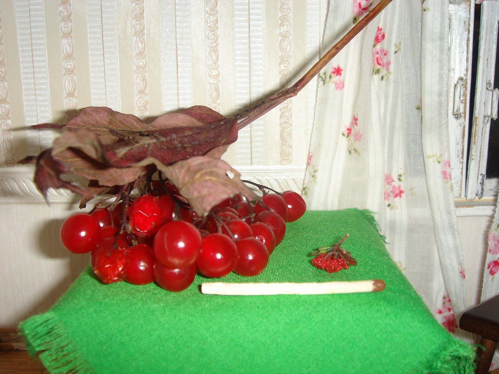 Веточки для мини калины из веточек настоящей калины. Веточки, сами понимаете, я не выбросила. Пригодятся. Из них можно сделать миниатюрные кусты.
